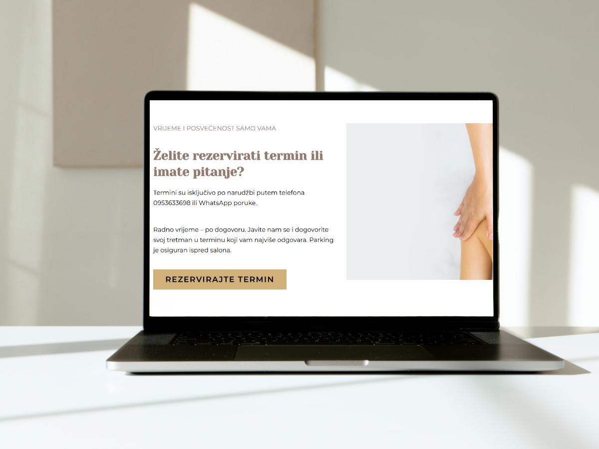 Projekt je obuhvatio izradu potpuno nove WordPress landing stranice s naglaskom na preglednu strukturu sadržaja i jednostavan korisnički put. Stranica je koncipirana tako da posjetitelja vodi od informiranja o tretmanima do izravnog javljanja putem WhatsAppa, bez dodatnih koraka ili nepotrebnih formi.