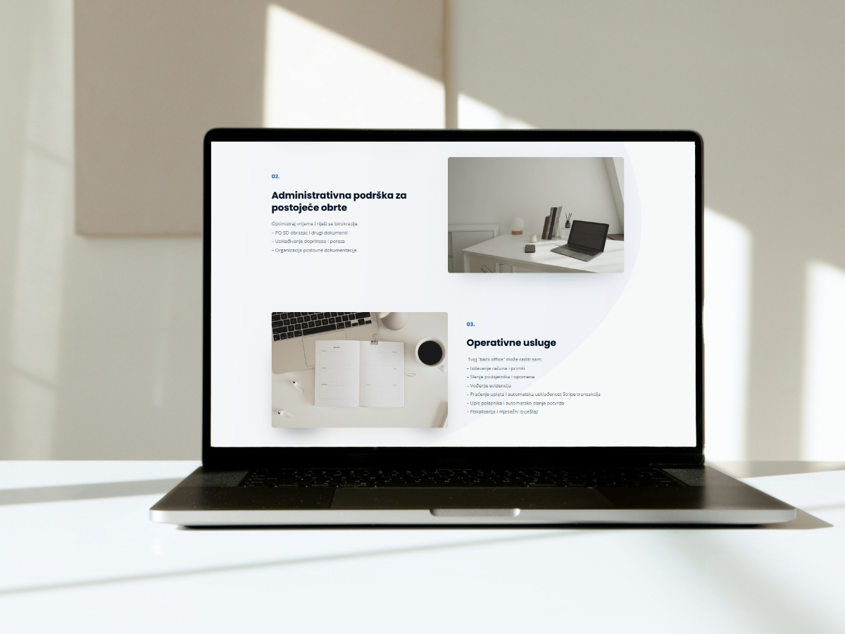 Za ovu klijenticu bilo je potrebno izgraditi jasnu i funkcionalnu online prisutnost koja će odmah objasniti usluge i način suradnje.
