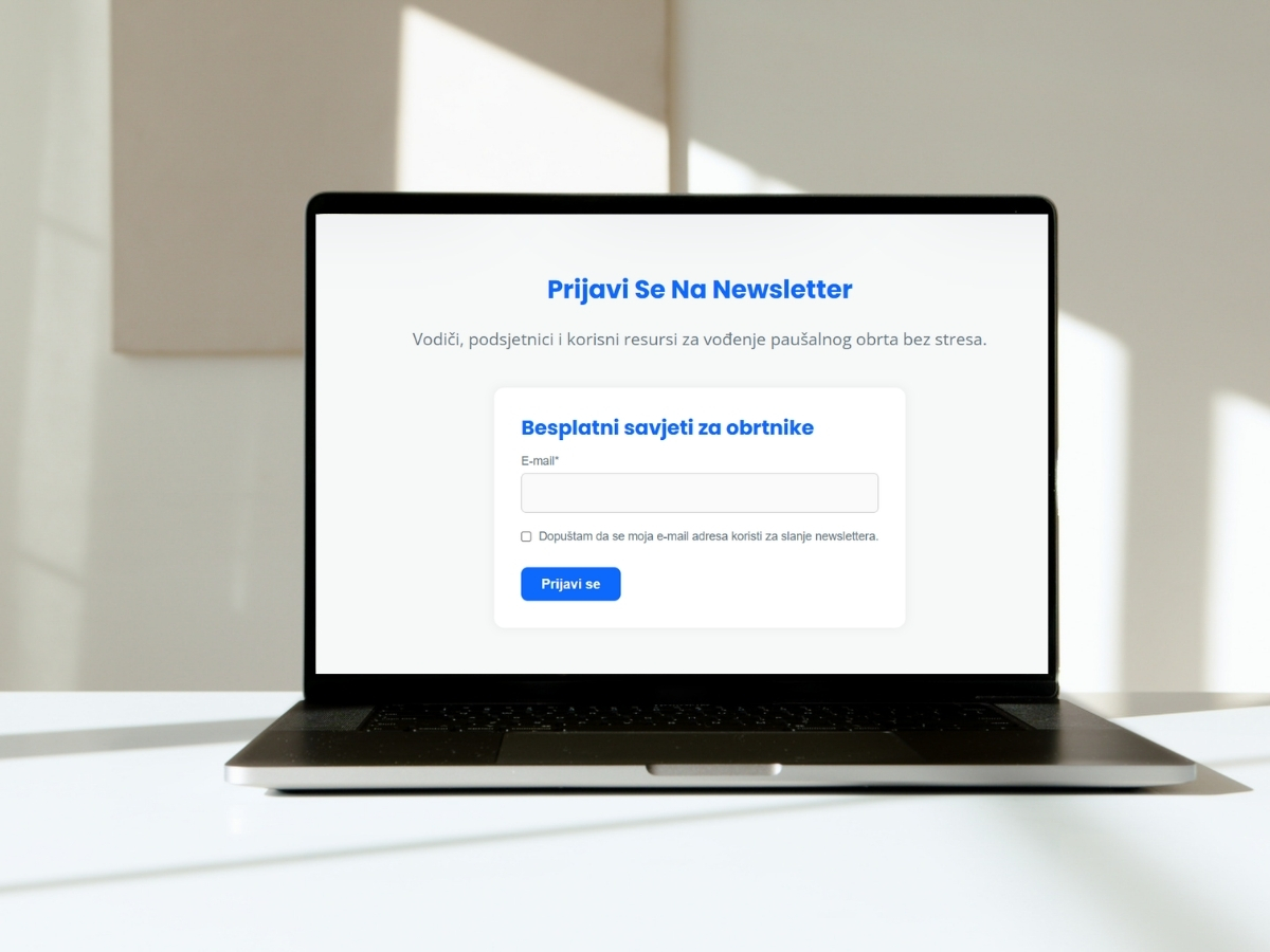 Dodatno je uveden newsletter sustav s prijavnom formom i automatiziranim e-mailom dobrodošlice, čime je web postao alat za svakodnevnu komunikaciju s klijentima, a ne samo statična prezentacija.